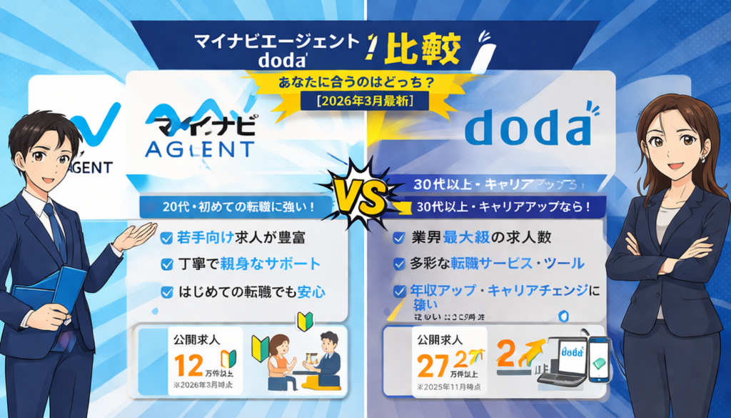マイナビエージェントとdoda徹底比較!あなたに合う転職エージェントはどっち?【2026年3月最新】