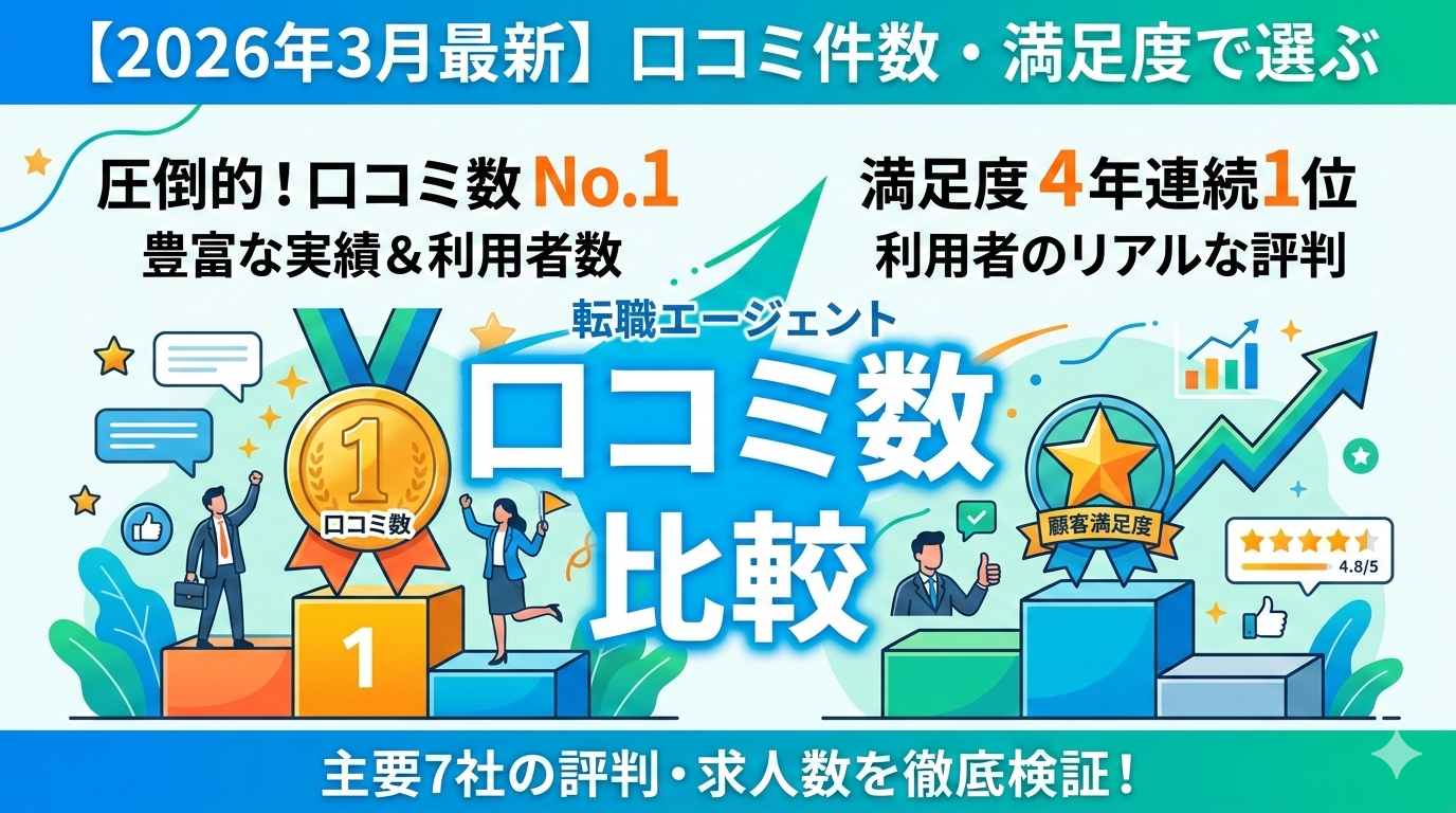 【2026年3月最新】転職エージェント口コミ数比較ランキング7社|主要サイトの評判件数・満足度を徹底検証