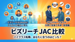 現在の年収が500万円以上で、さらなるキャリアアップを目指すなら、JACリクルートメントとビズリーチの併用が効果的です。JACリクルートメントは両面型の高精度なマッチングと年収交渉力で知られ、ビズリーチではスカウトを通じて自分の市場価値を確認しつつ、好条件のオファーを受け取れます。リクルートエージェントも求人数の多さから幅広い選択肢を確保できるため、3社併用で網羅的に進めるのがベストです。